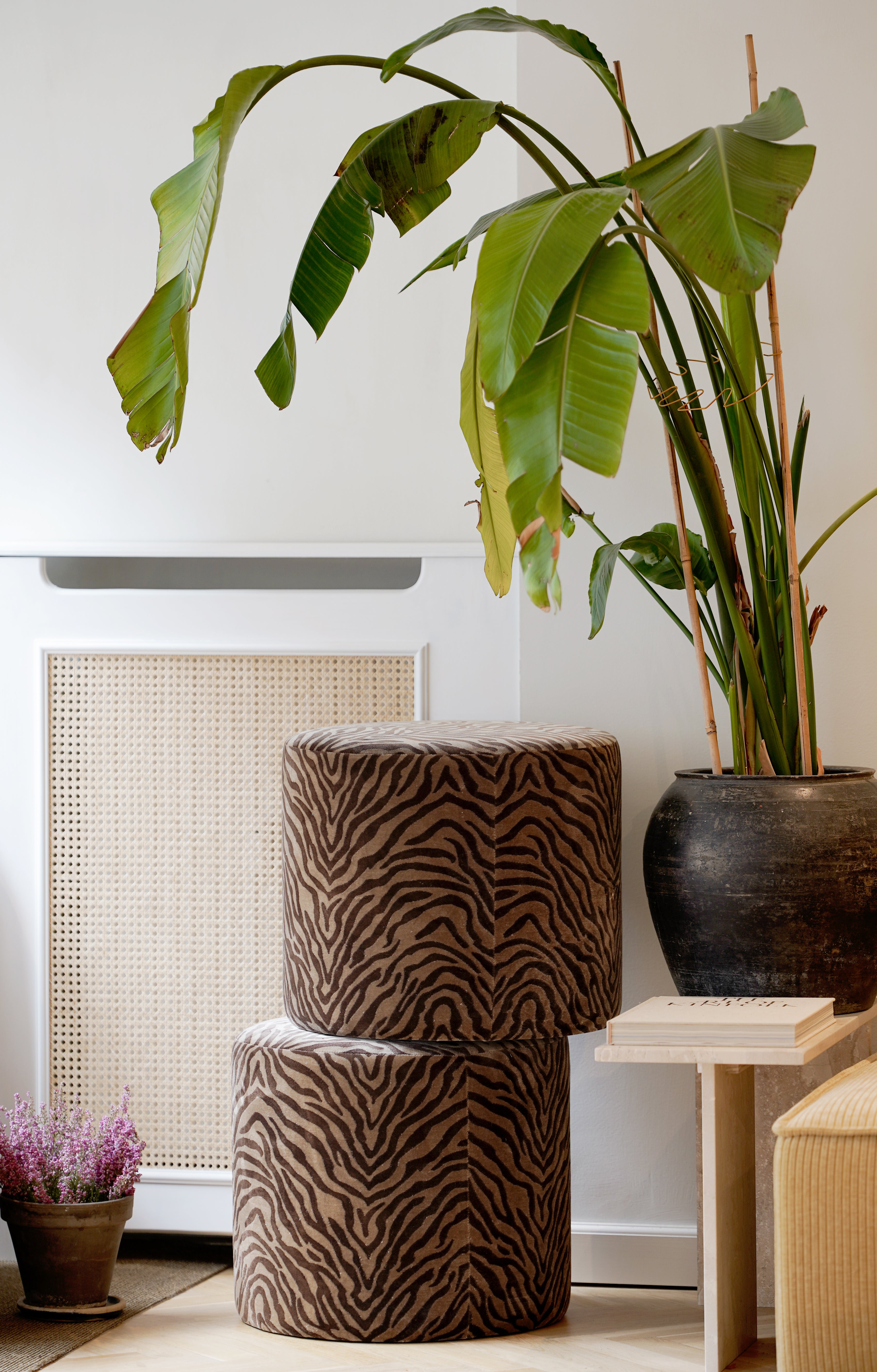 En rund puf, der kombinerer funktionalitet og fleksibilitet i ét møbel. Brug den som ekstra siddeplads, fodskammel, sidebord eller natbord – mulighederne er mange, og puffen er let at flytte rundt på, alt efter behov og indretning.